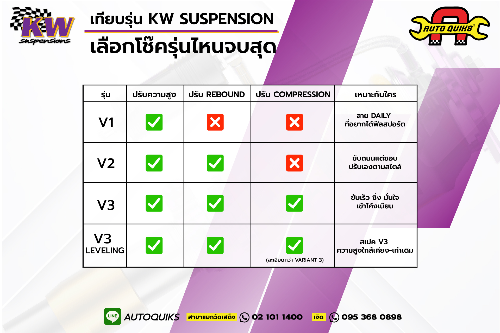 KW V3 Leveling – สเปค V3 ปรับความสูงเท่าเดิมได้ เหมาะสำหรับคนที่ไม่ต้องการโหลดเตี้ย