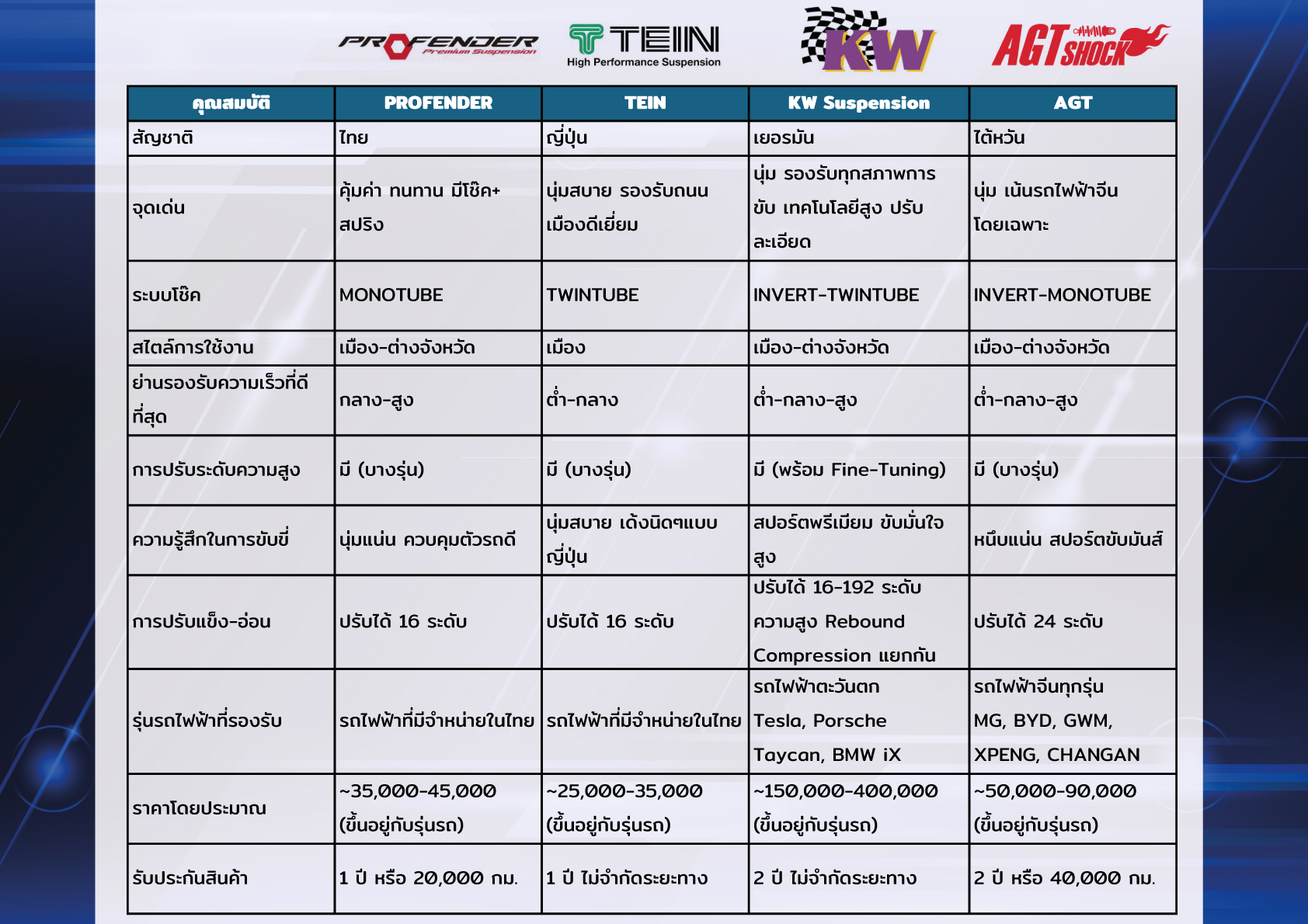 เปรียบเเทียบโช๊ครถไฟฟ้าแต่ละยี่ห้อ
